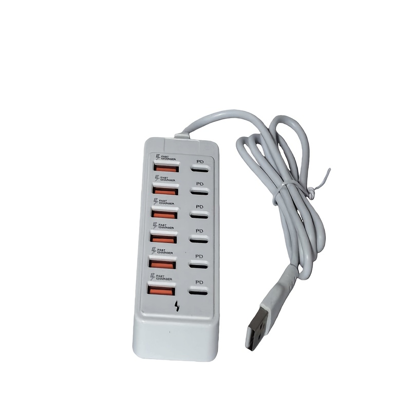 TEMU 12포트 6USB+6Type-C/PD USB 충전 및 허브, 66W 고속 충전, 스마트폰, 태블릿, 노트북, PD 기기 호환 - 컴팩트 멀티포트 충전기, USB 충전 게이트웨이, 외부 AC 어댑터 불필요