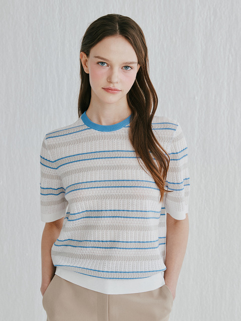 [머레이 알란] 린넨 코튼 컬러 스트라이브 캐이블 풀오버