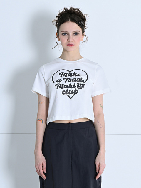 [메이크어토스트] 멕토 하트 프린트 크롭 티셔츠 화이트