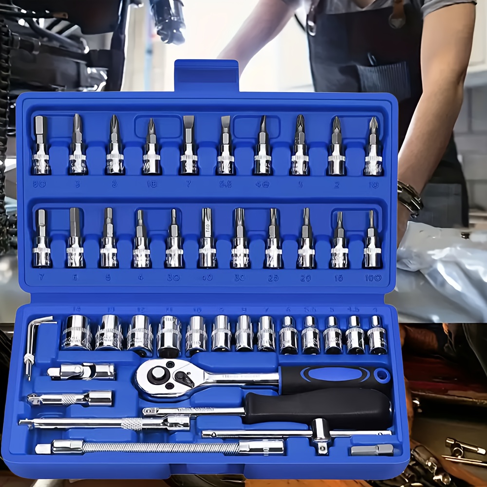 TEMU 46개 1/4" 드라이브 소켓 라쳇 렌치 세트, 자동차, , 자전거 및 가정 수리에 적합한 유니버설 조인트 및 미터법 익스텐션 바, 드릴 비트 소켓 키트 (보관함 포함), 유지 보수, 자전거 수리, 컴팩트 디자인, 내구성 있는 구조
