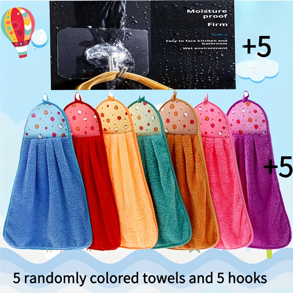 TEMU 10개 세트 부드러운 코랄 타월 후크 포함 - 두꺼운 걸이형 목욕 & 손수건, 흡수력 뛰어난 내구성 모던 도트 & 모양 (코랄), 욕실용 - 쉽게 세척 가능, 대량 패키지