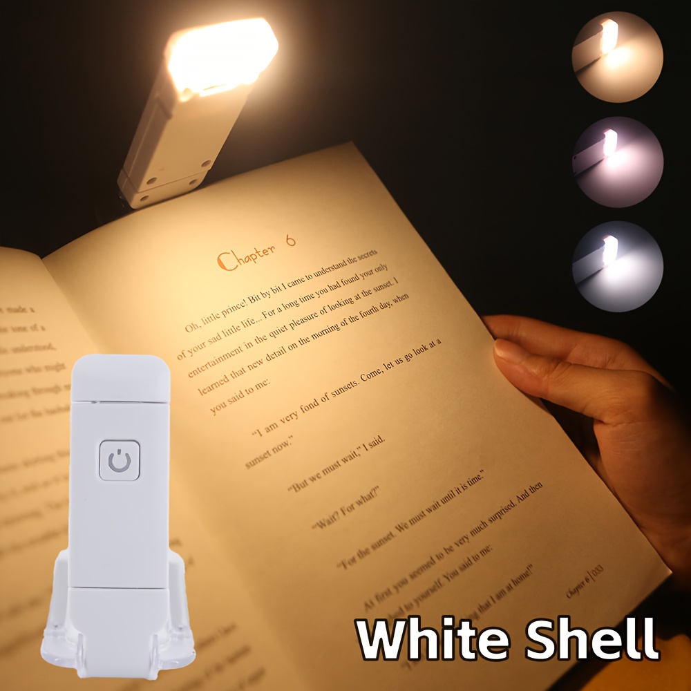 TEMU 미니 휴대용 접이식 북라이트 USB 충전식 클립 - 3가지 색상 모드(웜/쿨/), 3단계 밝기 조절, 눈 보호 독서등, 침대 옆, 여행용, USB 충전식, 책 및 전자책용