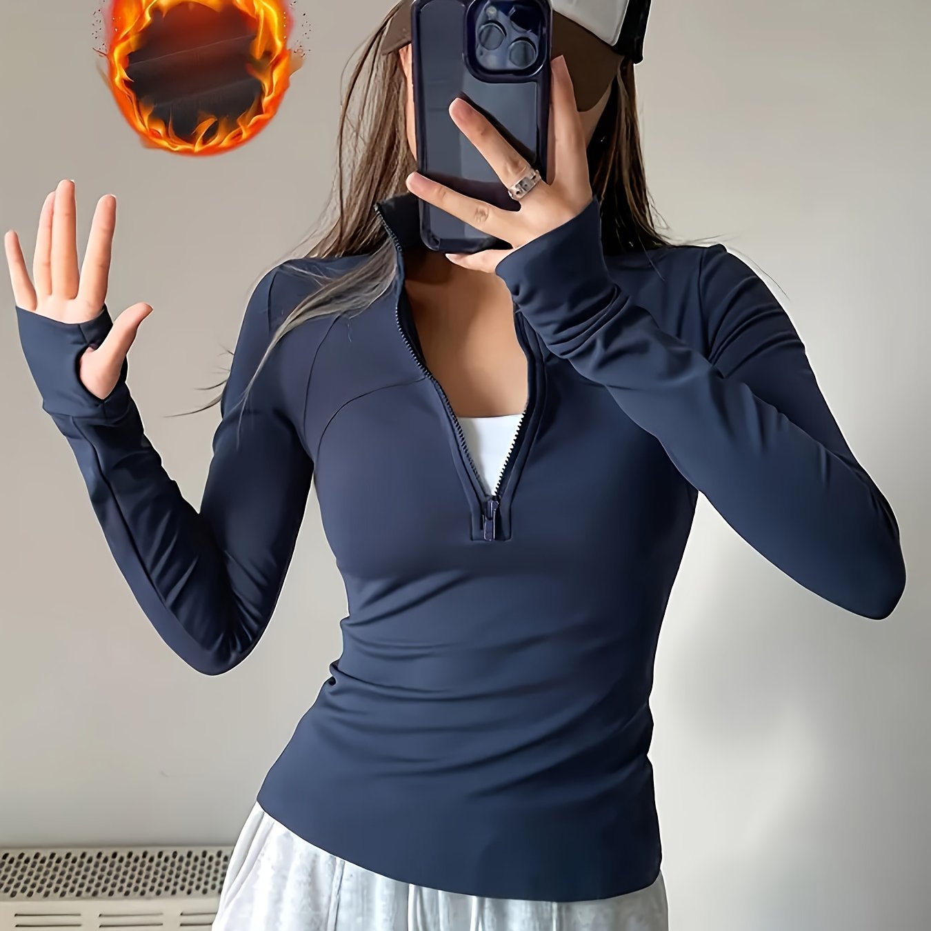 TEMU 1개 여성용 소프트 스트레치 엄지 핏 하프 지퍼 긴팔 탑 - 엄지 핏 디자인의 솔리드 캐주얼 운동 셔츠, 라운드넥 & 지퍼 클로저, 헬스, 운동 & 캐주얼 복장 (세탁기 사용 가능, 단색, 중간 스트레치, 편안한 착용감)
