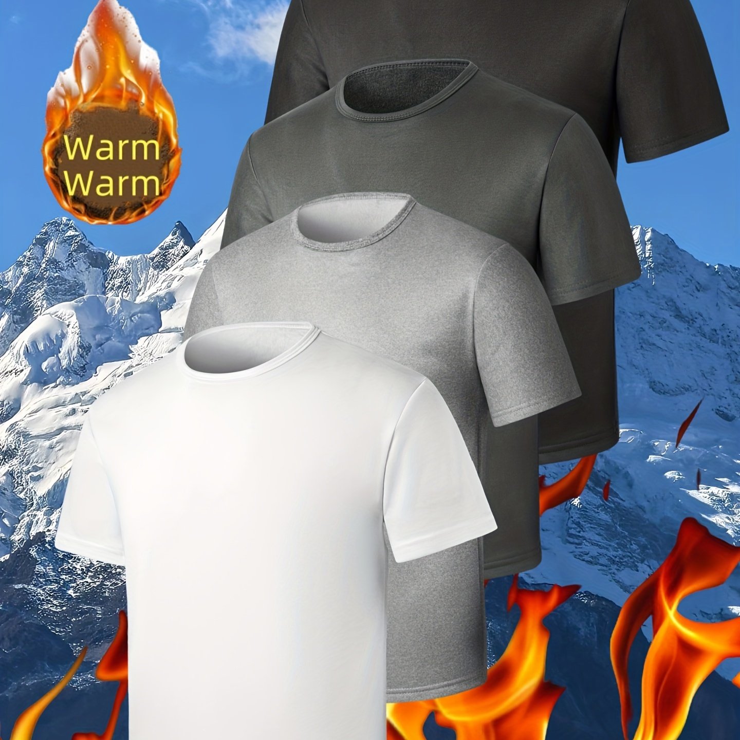 TEMU 가을 겨울 캐주얼 스포츠 러닝용 타이트핏 반팔 라운드넥 티셔츠 4pcs - 안감 및 두께 강화, 겨울 레이어링,추운 날씨 옷, 디자인,단색 셔츠,두꺼운 원단,내구성 있는 소재,운동복,레이어링 피스,체육관 애호가|반팔셔츠|반팔니트|반팔