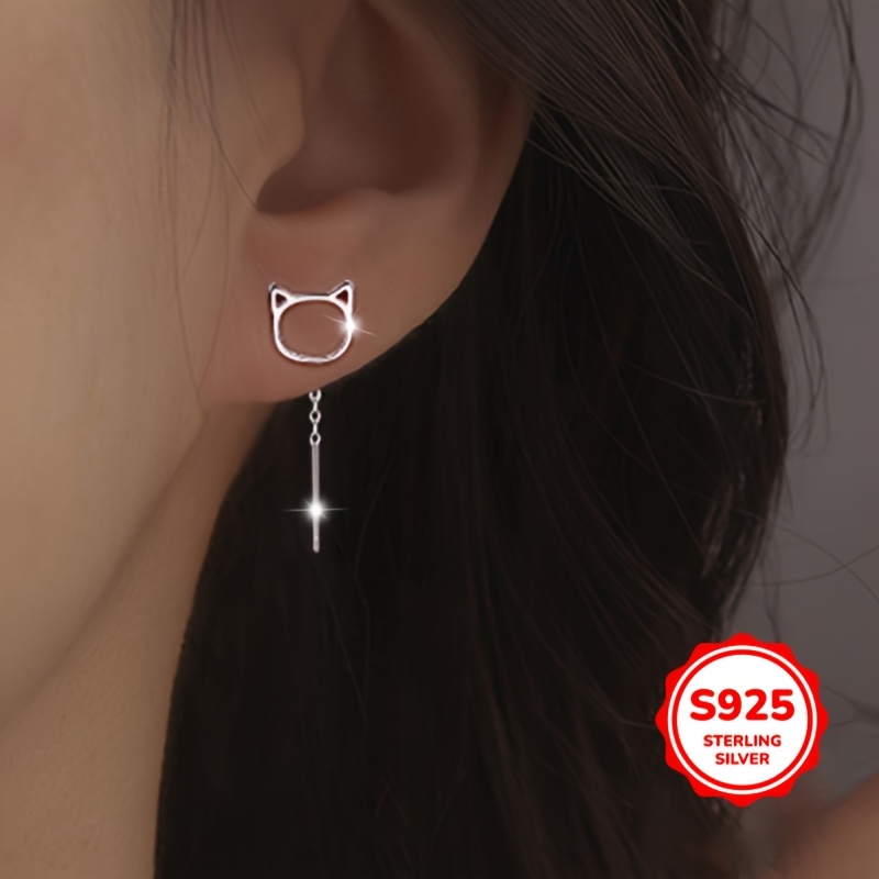 TEMU 여성용 실버 캐릭터 고양이 귀걸이 한 쌍, 귀엽고 장난스러운 디자인, 컴팩트하고 심플한 데일리용, 다양한 행사에 적합, 저자극성