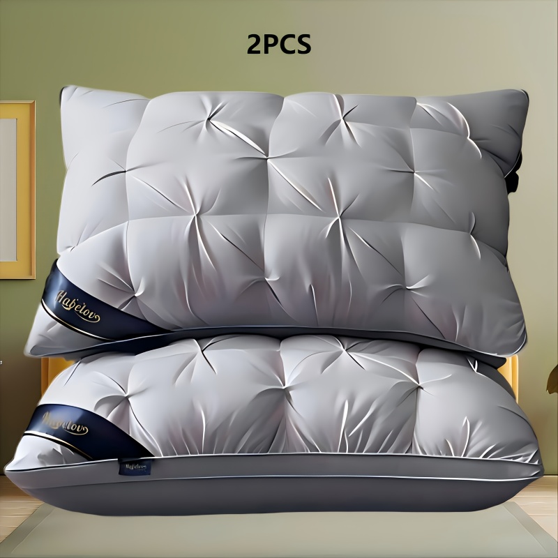 TEMU 1/2개입 고급 5성급 호텔 퀄리티 베개 - 넥 서포트 기능으로 깊은 수면을 위한 디자인, 고밀도, 평탄화 방지 커버로 사계절에 적합, 화이트 새틴 소재로 제작, 100% 폴리에스터 충전재 사용