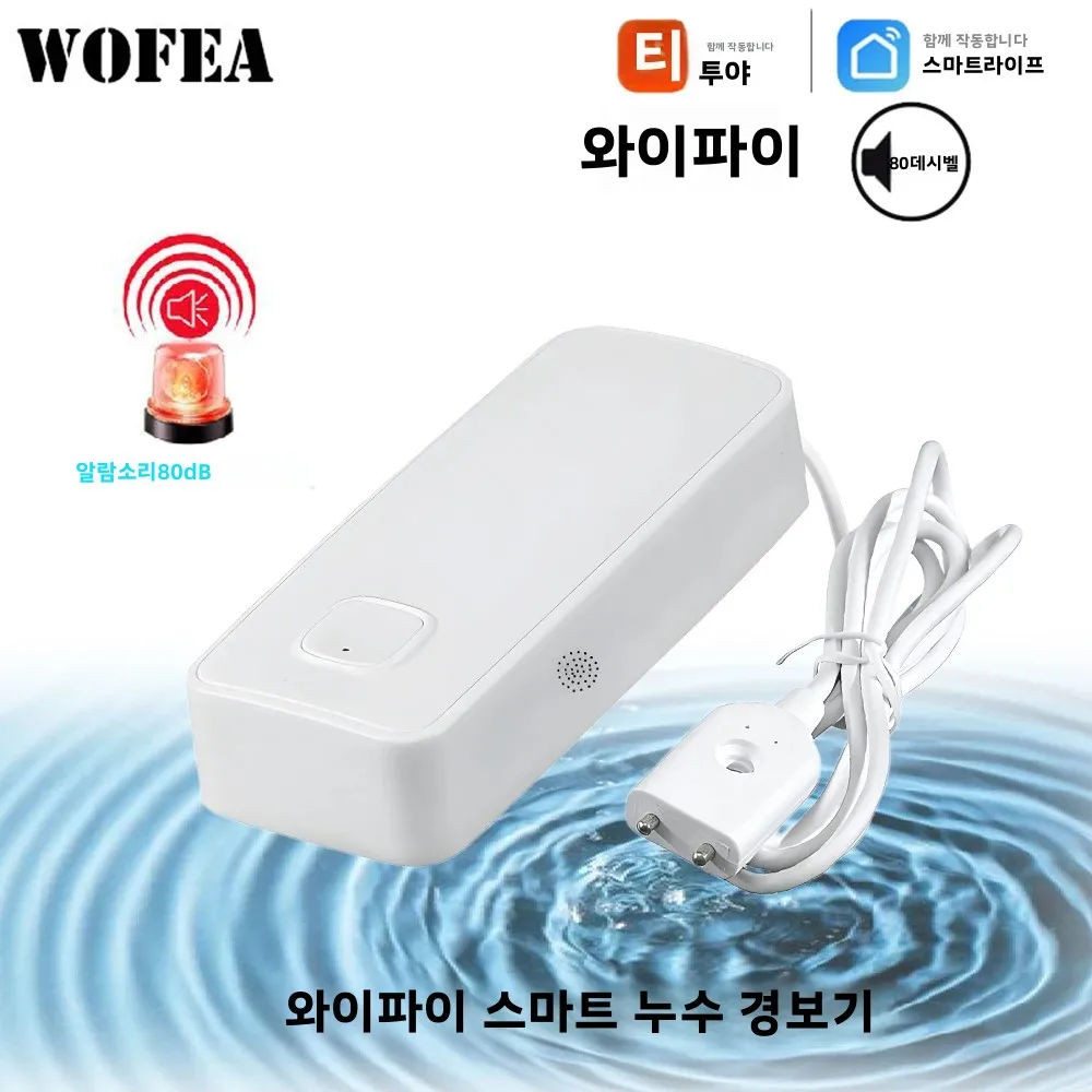 투야 스마트 WiFi 누수 경보기, 투야 스마트 라이프 앱으로 무료 알림, 2.4G 와이파이 물 감지기, 배터리 전원