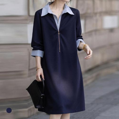 비비디아 여성 봄가을 오피스룩 배색 슬림 원피스 정장 스타일 미디 드레스 출근룩5576