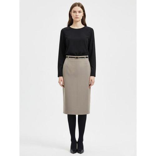[샵앤]국산 여성 정장 벨트 클래식 H라인 스커트 NS-WSK-21056-베이지