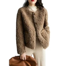 오스틱니 (우아한 추천) 여성 빅사이즈 라운드넥 뽀글이 숏 털코트 자켓 겨울 날씬해보이는 슬림핏 융털 후리스 아우터 따뜻한 외출 큰옷 여성의류 단아한 데일리 퍼 잠바 77