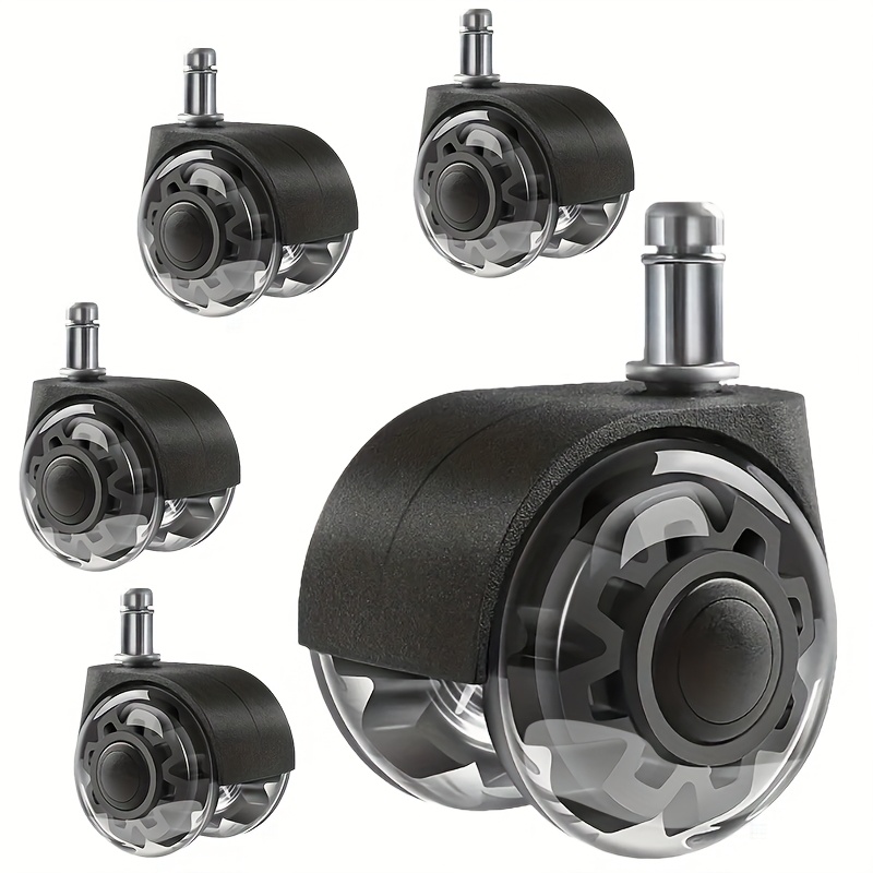 TEMU (5개 세트) 가정용 2인치 검정 PU 캐스터, 공구 불필요 설치, 저소음 및 내마모성 회전 바퀴, 강력한 하중 지지력, 트롤리/공구 상자/가구/사무 의자/게이밍 의자 특정 캐스터 (11*22mm)에 적합