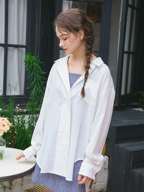 TEMU 화이트 긴팔 셔츠 & 재킷, 니안 니안|셔츠