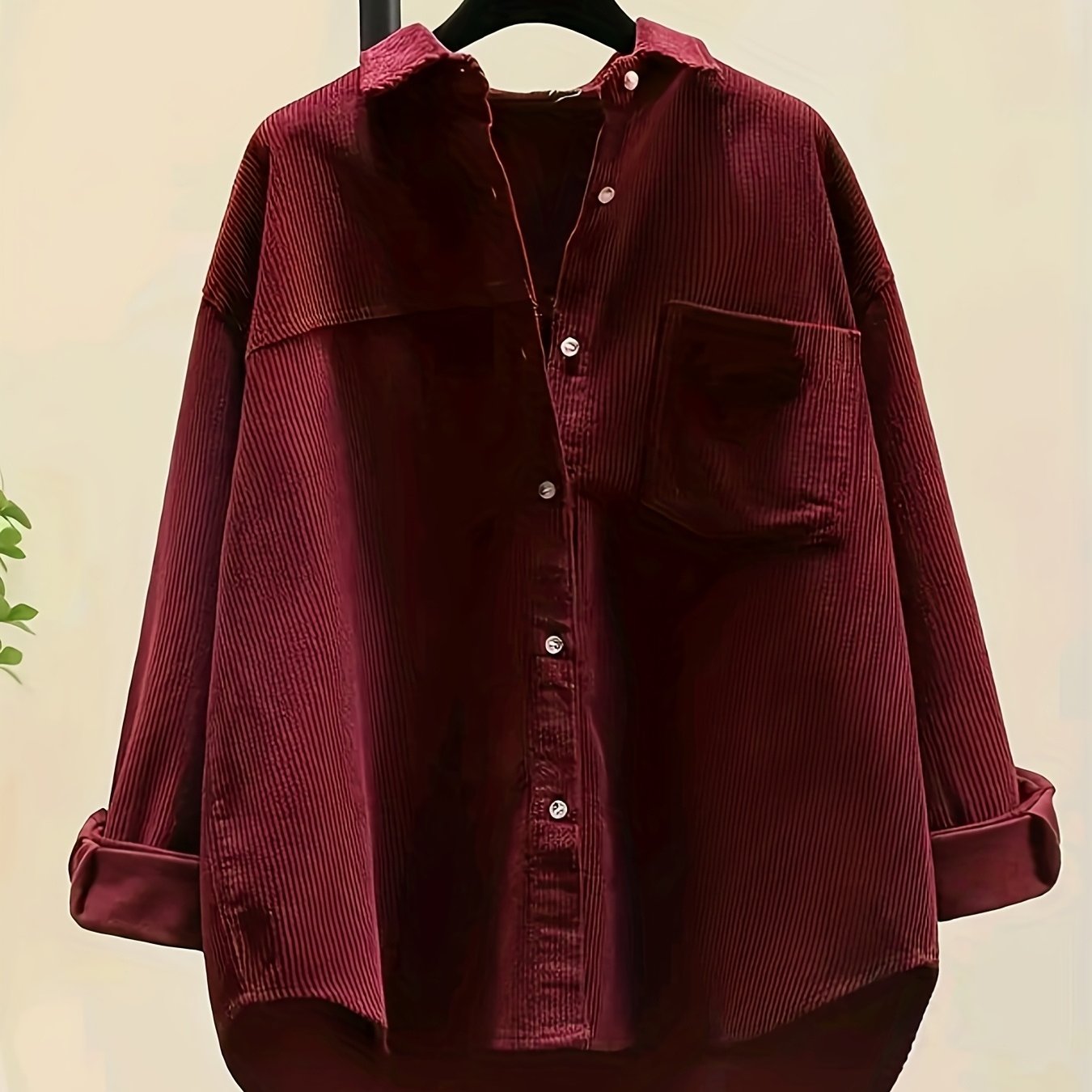 TEMU 여성용 코듀로이 셔츠, 캐주얼 버튼업, 레이어드 스타일, 루즈핏, 통기성 소재, 긴 소매, 봄, 가을, 겨울용 다용도 버튼업 탑, 여성 패션, 오피스 캐주얼