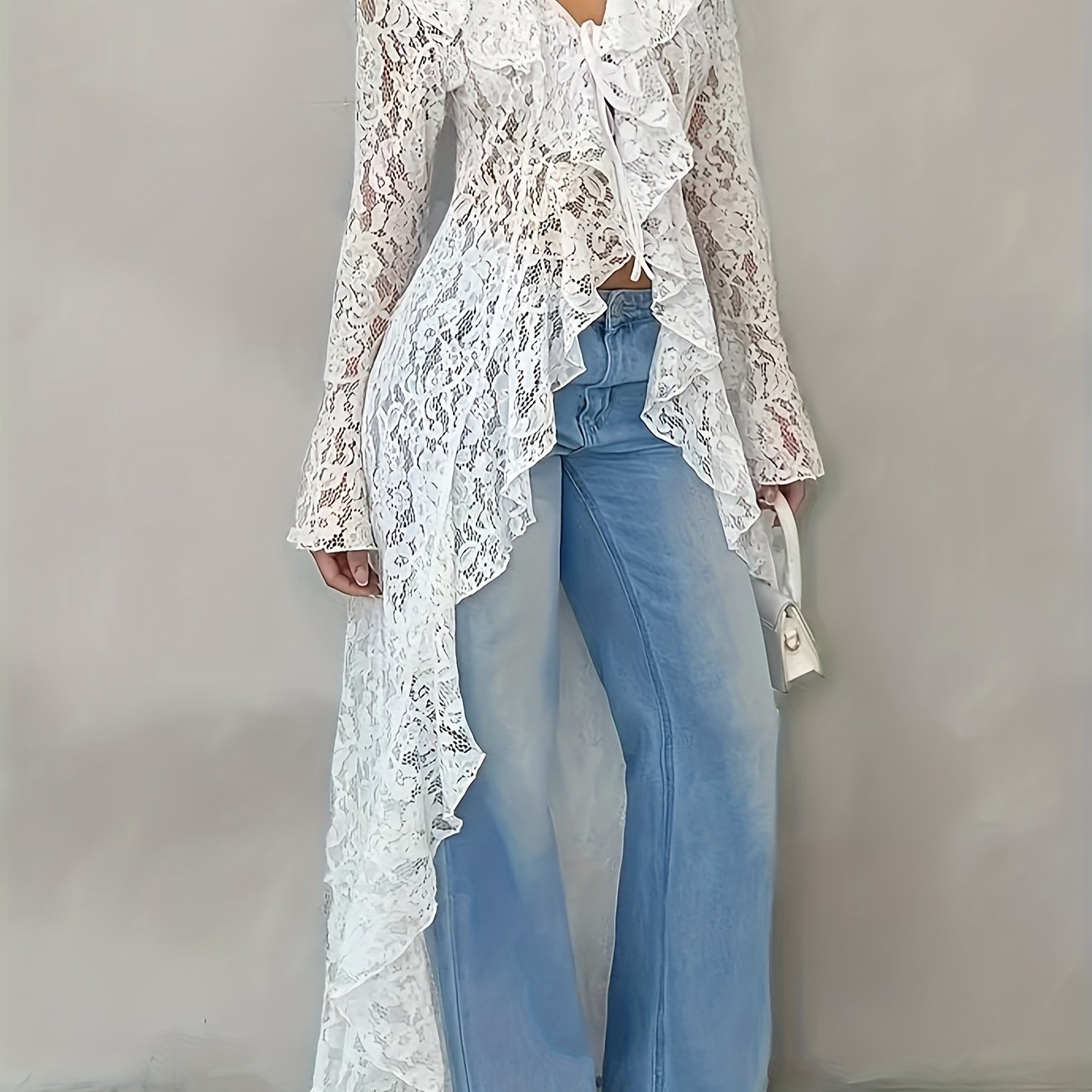 TEMU 해외 신상 여성용 레이스 프론트 숏백 롱 시스루 섹시 티셔츠
