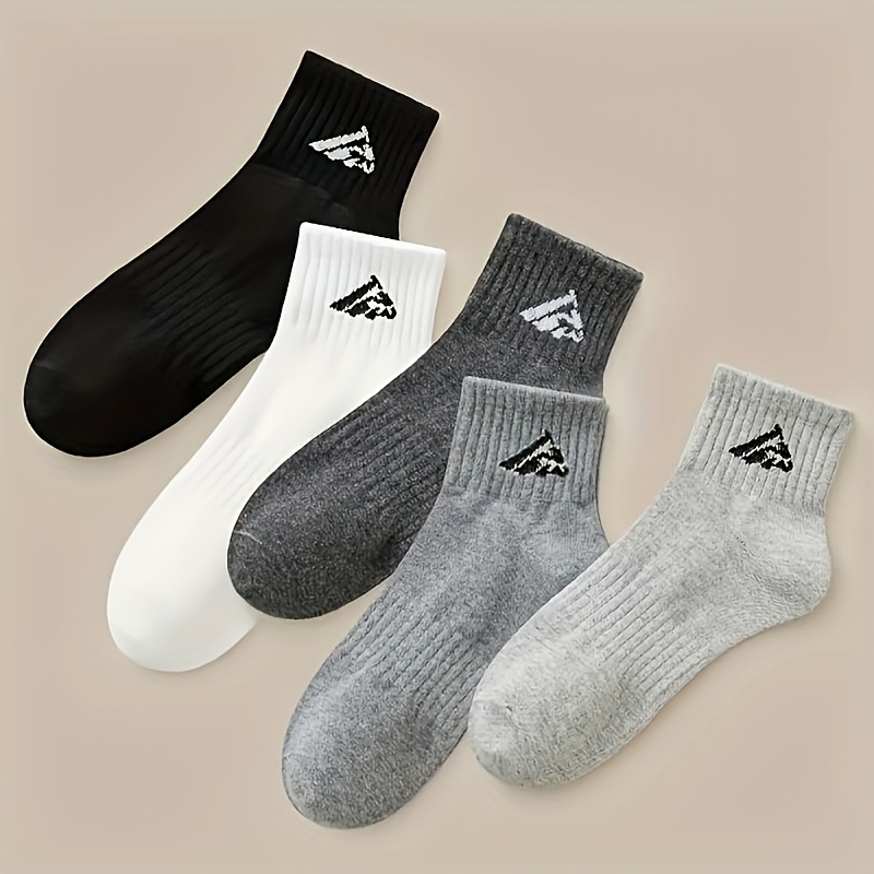 TEMU 혼합 색상 5팩 반바지 양말 - 남성용 수직 줄무늬 번호 발목 양말