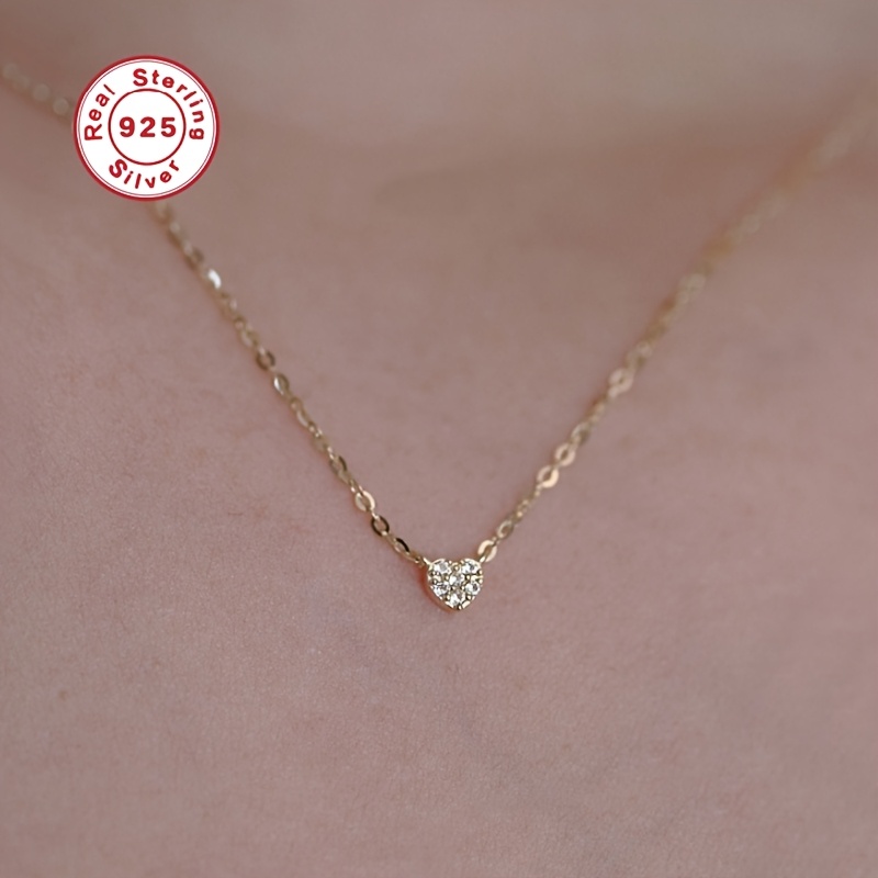 TEMU 우아한 스털링 실버 목걸이, 14K 골드 도금 미니 하트 펜던트와 반짝이는 합성 큐빅 지르코니아 하트, 일상 및 특별한 날에 완벽한 선물, 발렌타인데이, 추수감사절, , 어머니날, 청소년을 위한 이상적인 선물, 휴일 선물,로맨틱 선물,우아한 목걸이,합성 보석,고품질 도금, 선물