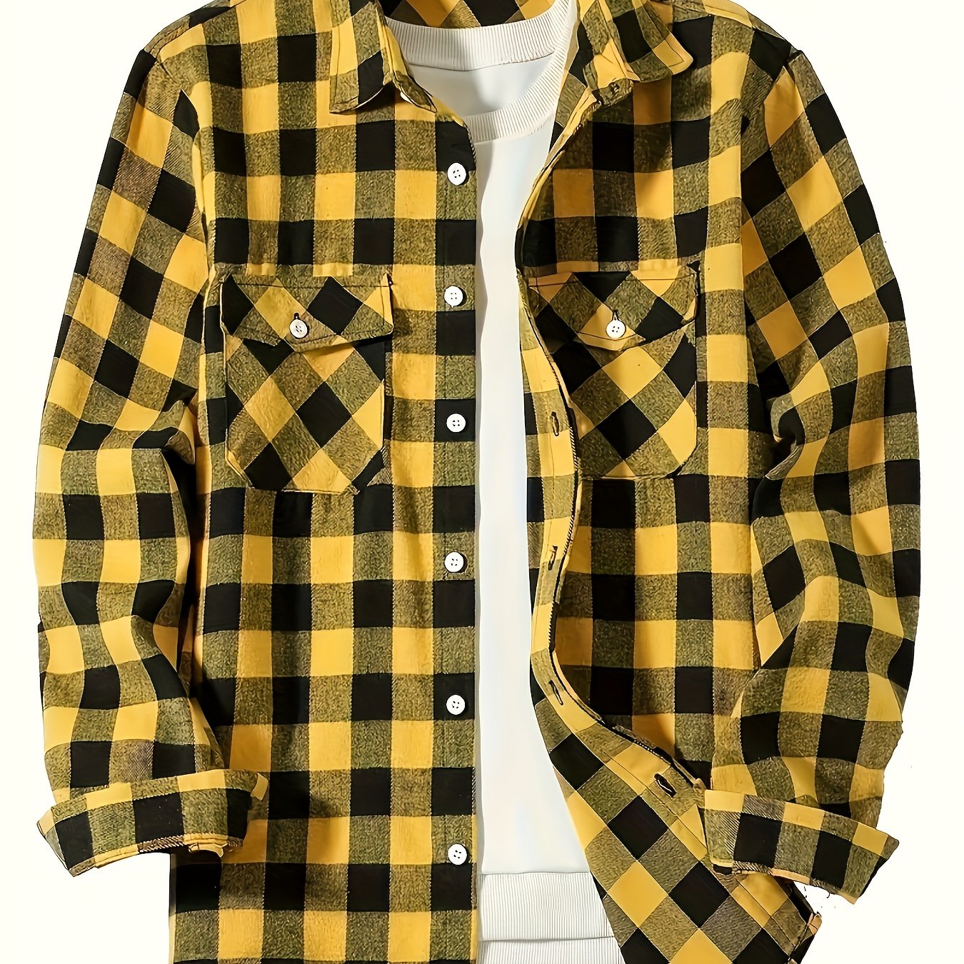 TEMU 2025 남성용 트렌디한 체크무늬 셔츠, 2025 봄/가을 신상품, 해외 직구 루즈핏 긴팔 셔츠 재킷