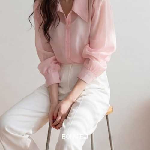 보니제이 / BONNIE J 봄 여름 비침 시스루 퍼프소매 블라우스 빅