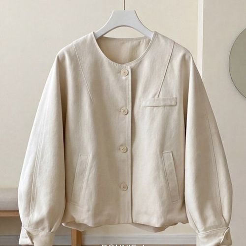 보니제이 / BONNIE J 여성 노카라 라운드넥 자켓 루즈핏 벌룬 소