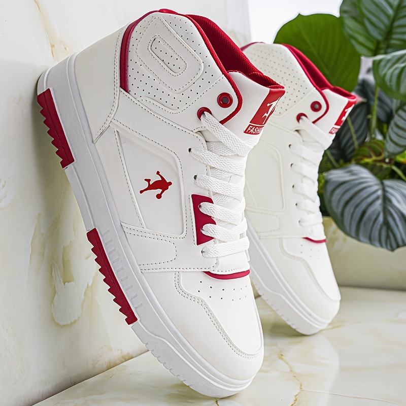 TEMU 남성용 하이탑 캐주얼 스니커즈, 화이트, 레드, 화이트/, 블랙, 그레이 네 가지 색상. 야외 하이킹, 크로스컨트리, 농구장용 편안한 신상 농구화. 봄, 여름, 가을, 겨울 사계절용 플러스 사이즈 패셔너블하고 활용도 높은 스트리트웨어. 출퇴근, 피트니스, 훈련용으로 적합
