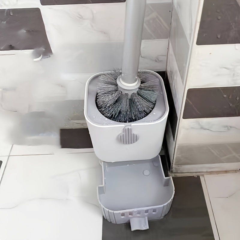 TEMU 벽걸이형 긴 손잡이 변기 브러시 세트 - 유연한 디자인, 구석진 곳까지 청소 가능, 배수 기능 포함. 화장실 및 욕실용 편리한 휴지 홀더와 타월 랙