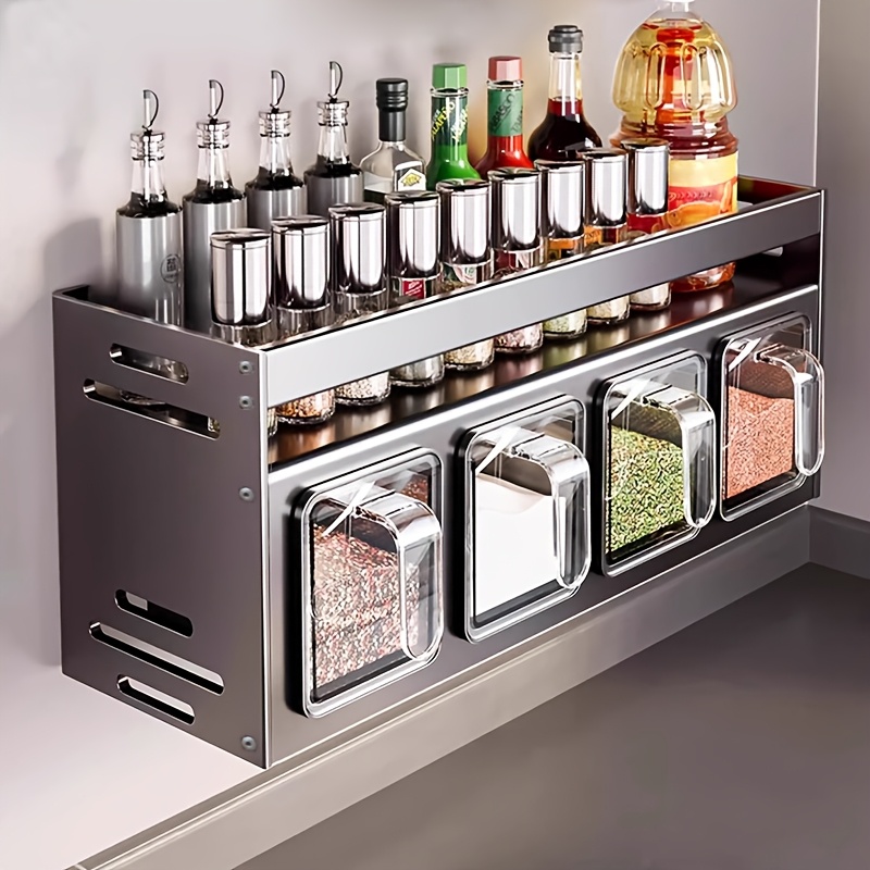 TEMU 주방 양념 보관 선반, 비구멍 벽부착형 다기능 양념 조합 세트, 양념통 및 캔, 주방 및 가정용