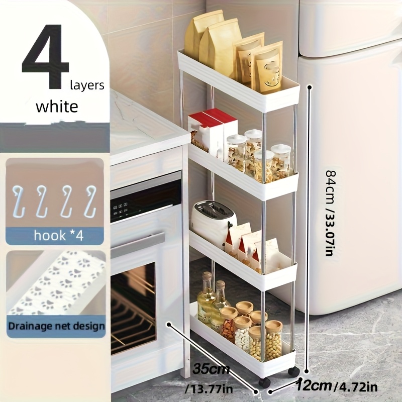 TEMU 4/3단 슬림 이동식 수납 카트 - 헤비듀티 스테인리스 프레임 수직 선반 유닛, 주방, 욕실, 세탁실용 - 컴팩트 공간절약형 카트, 조립 불필요, 휴대용 정리 카트