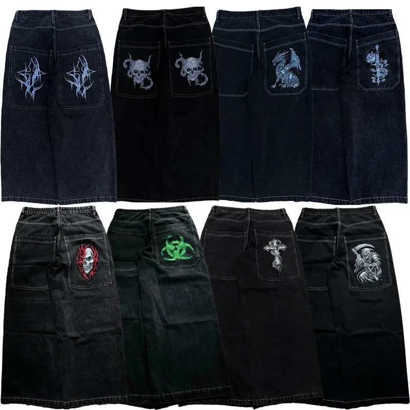 Y2K 블랙 와이드 진 하라주쿠 빈티지 2000년대 고딕 프린트 그래픽 고품질 청바지 배기 남녀 힙합 패션 스트릿웨어