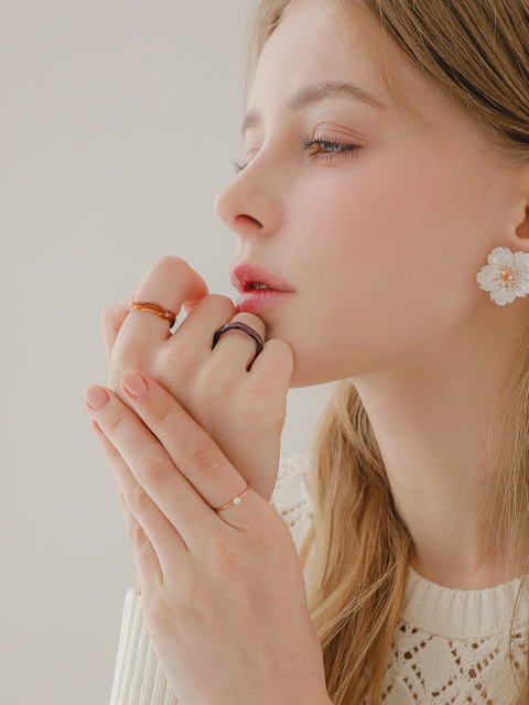 [르웨] [6mm+10mm 진주귀걸이 증정] Mini ribbon ring