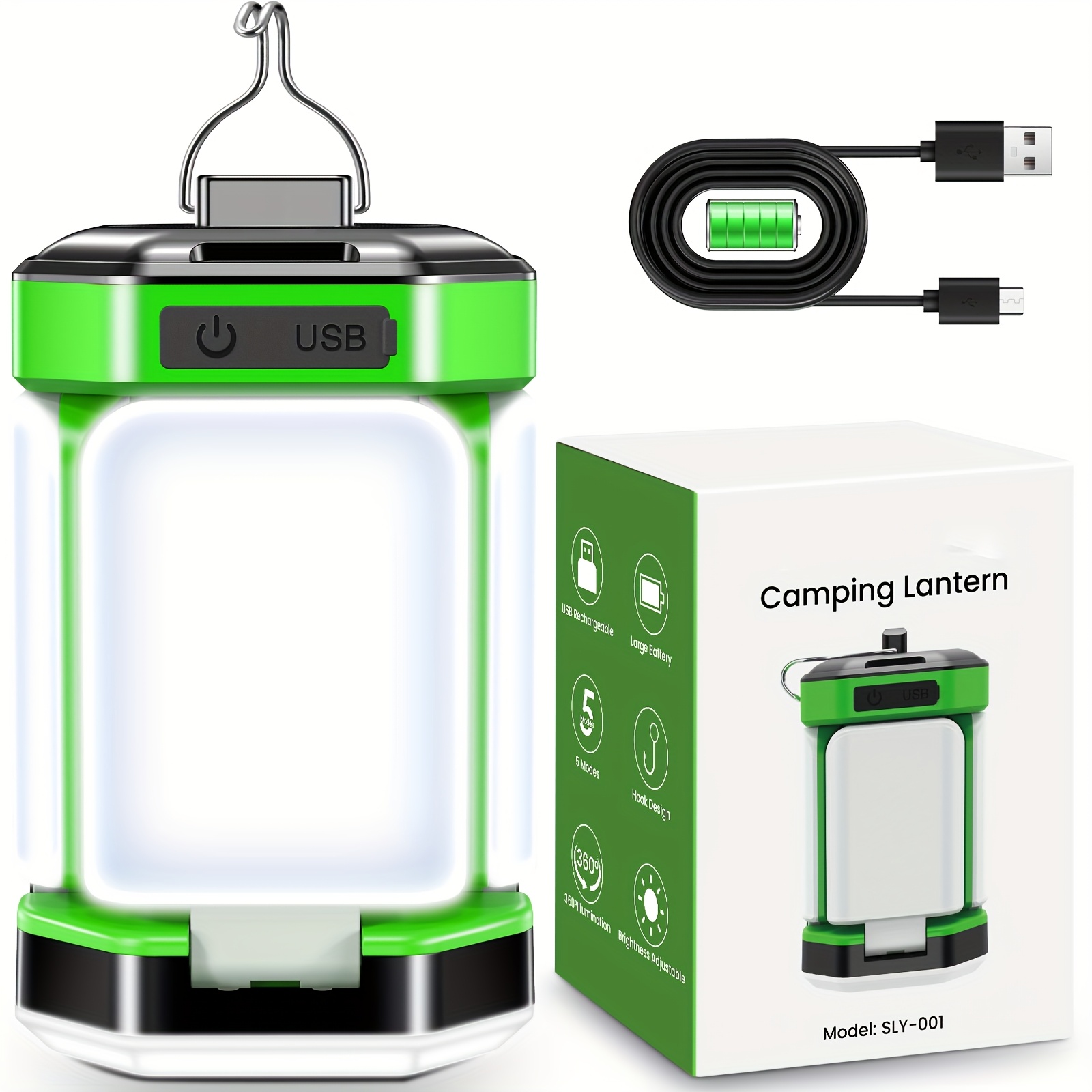 TEMU LED 로드 캠핑 라이트, USB 충전식 3600mAh 배터리, 5가지 조명 모드, 밝기 조절, 푸시 버튼 컨트롤, 60개 LED 구슬, 캠핑, 하이킹, 낚시 및 야외 비상용