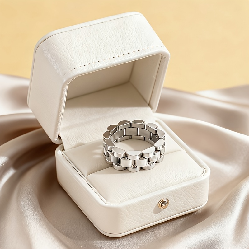 TEMU 우아하고 고급스러운 스테인리스 스틸 스트랩과 링, 발렌타인데이 선물로 추천하는 남녀공용 , 파티와 데일리 코디