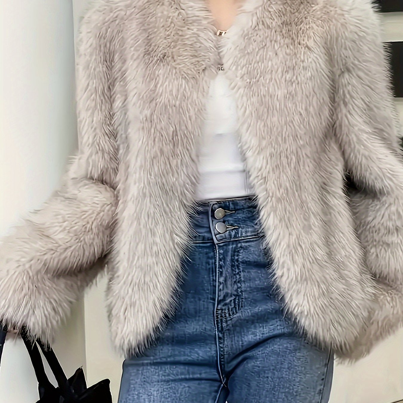 TEMU 여성용 우아한 인조 여우 퍼 겨울 코트 재킷 - 부드럽고 매끄러운 퍼 아우터웨어, 세탁기 사용 가능한 가을/겨울 , 단색 레귤러 길이 추운 날씨, 웨딩, 파티, 일상용 - 논스트레치 럭셔리 재킷