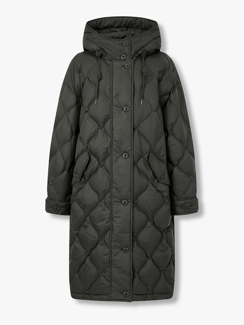 [스튜디오 톰보이] 퀼팅 후드 경량 롱 다운점퍼_다크카키 9175414985