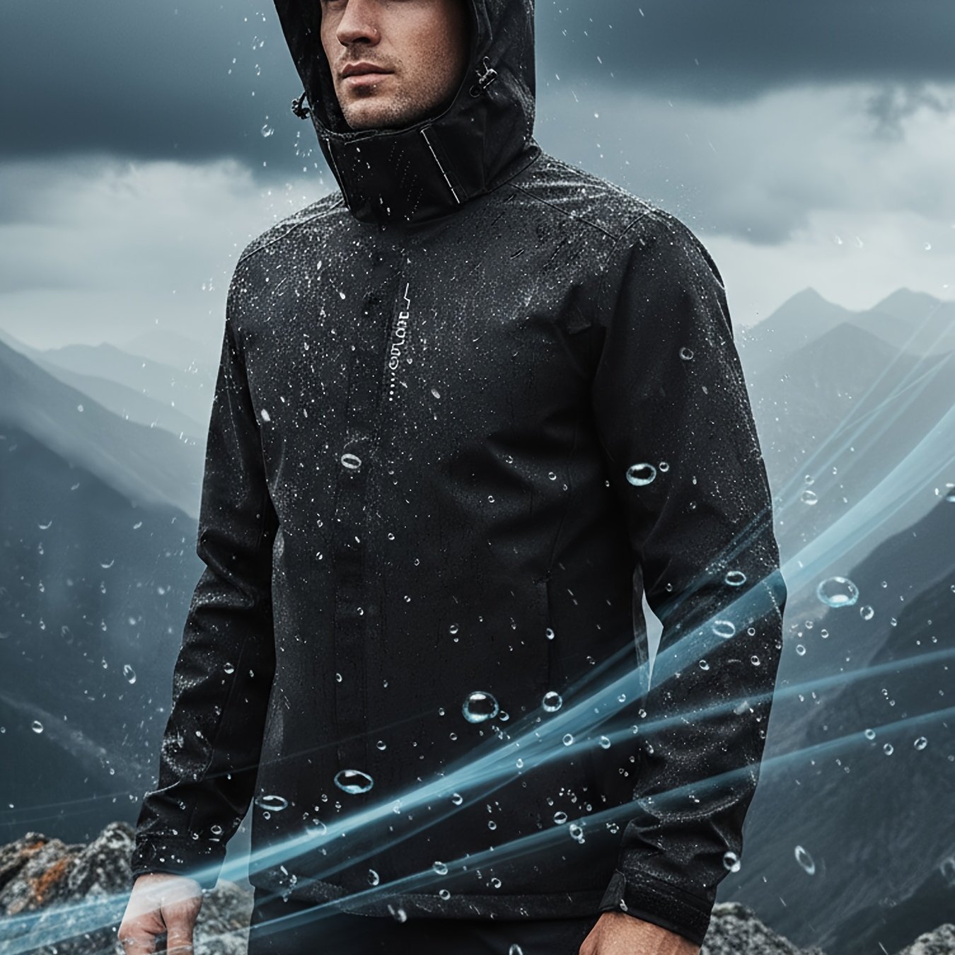 TEMU 남성용 경량 아웃도어 재킷 (봄/가을용), 단색, 후드, 스타일리시한 캐주얼 스포티 디자인.