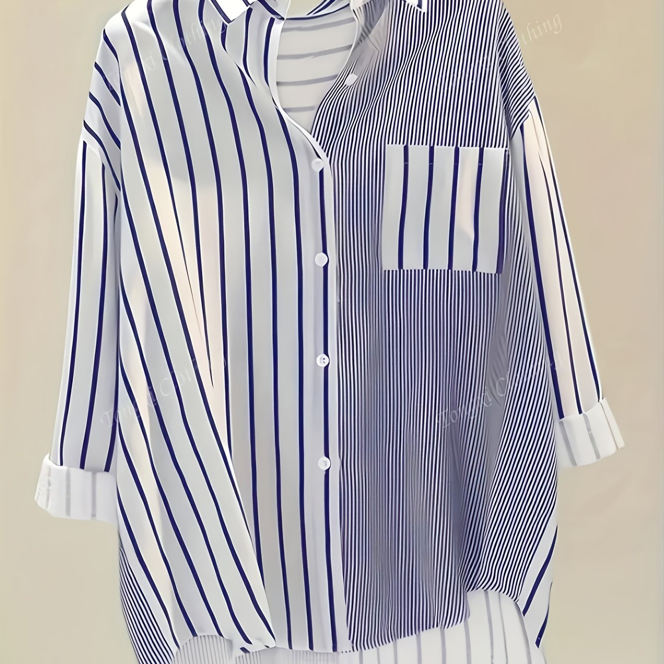 TEMU 플러스 사이즈, 여성용 우아한 긴팔 셔츠 클래식 버튼 칼라 셔츠