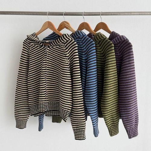 [옷자락]여성 배색 단가라 후드 가디건 투웨이 니트