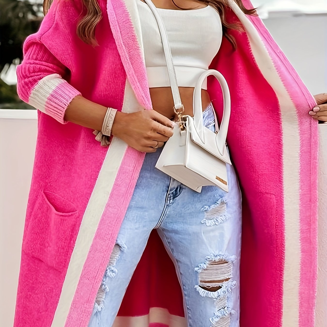 TEMU 여성용 두꺼운 가디건 스웨터 - 사이드 포켓, 루즈핏 겨울 코트, 일상 및 정장용, 쉬운 관리 아우터웨어 (오피스, 파티, 캐주얼) - 여성 가을/겨울 의류, 후드 니트웨어, 내구성 있는 니트, 고급 소재, 스타일리시한 니트웨어