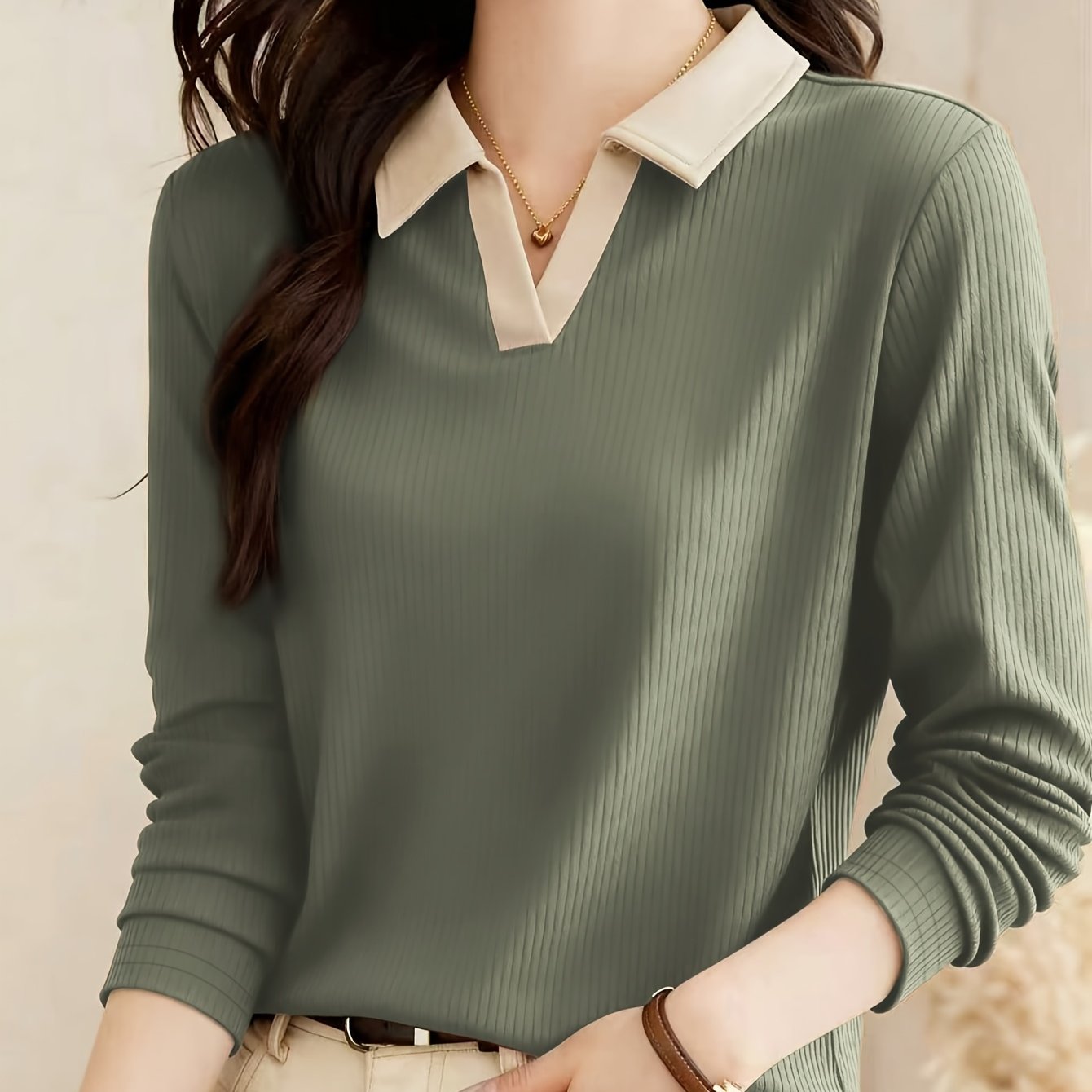 TEMU 여성용 봄가을 캐주얼 패션 롱슬리브 넥 컨트라스트 컬러 셔츠