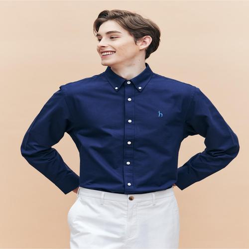 헤지스 남성 [아이코닉] 블루 솔리드 옥스포드 셔츠 (HZSH5A202B3)