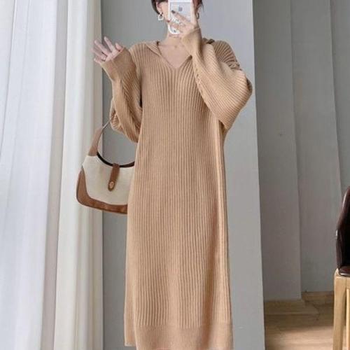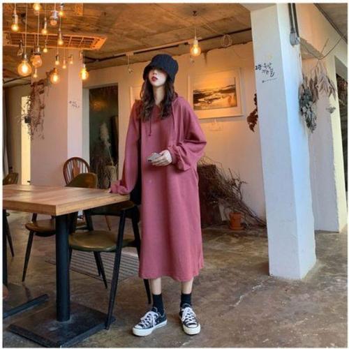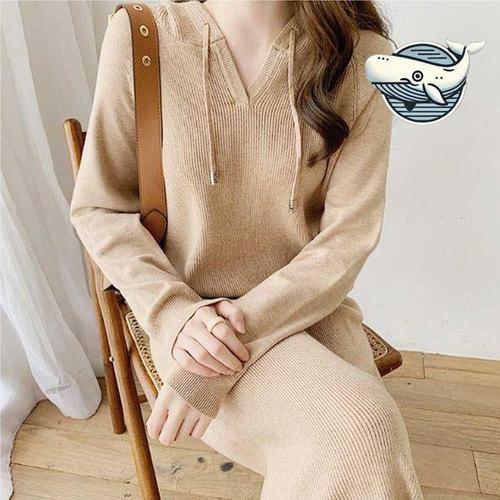 [에이치플러스몰]롱원피스 루즈핏 후드 니트 G125948 V넥