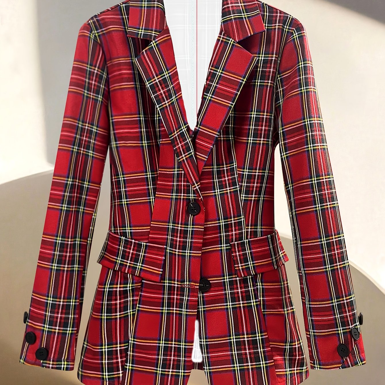 TEMU 여성용 캐주얼 크리스마스 체크무늬 싱글브레스트 슬림핏 긴팔 , 봄과 여름용