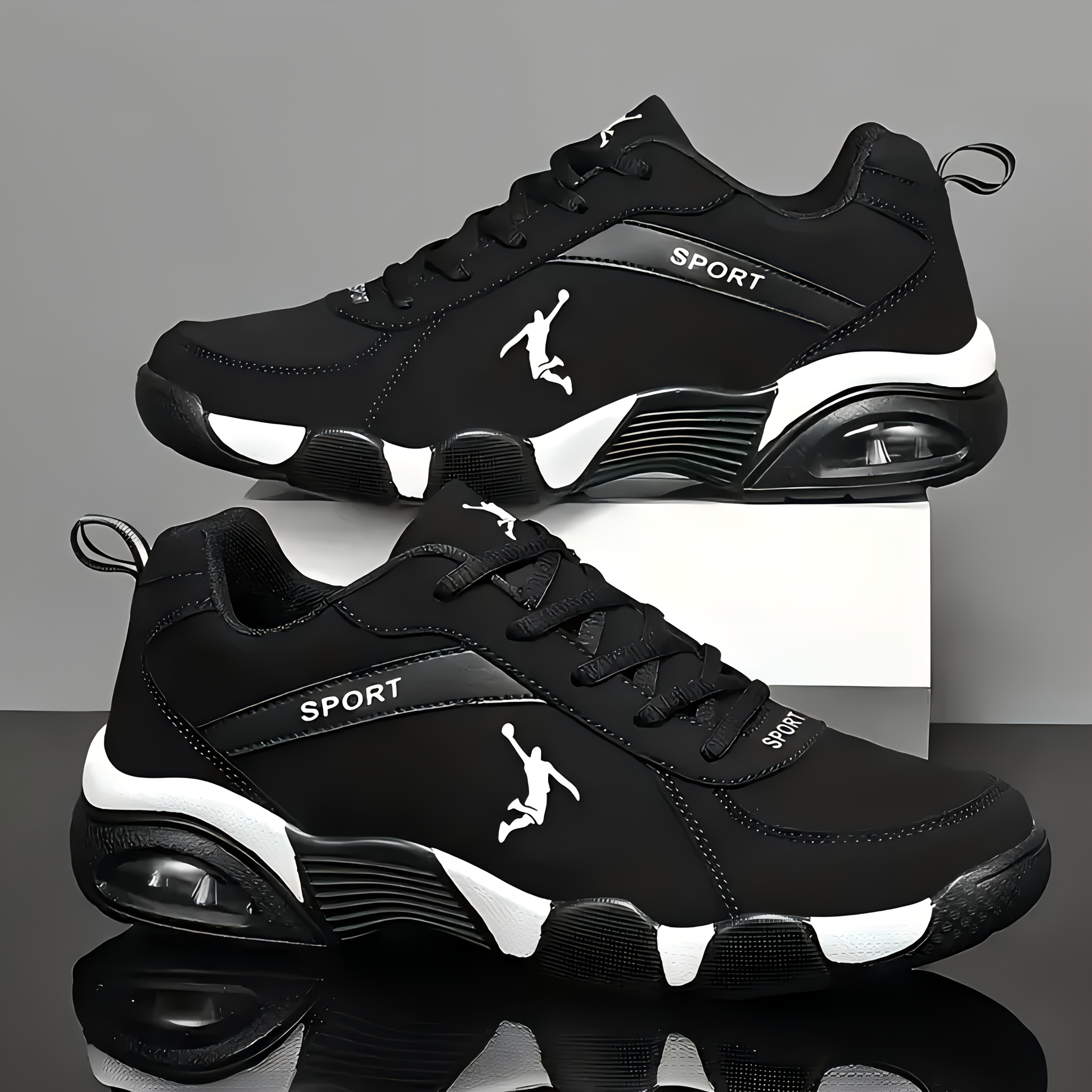 TEMU 남성용 튼튼한 운동화 - 미끄럼 방지 바닥, 아치 지지 및 쿠션 깔창이 있는 레이스업 캐주얼 스니커즈 - 야외 겨울 조깅 및 일상 사용에 적합 - 블랙 앤 화이트 디자인, 훌륭한 크리스마스 선물