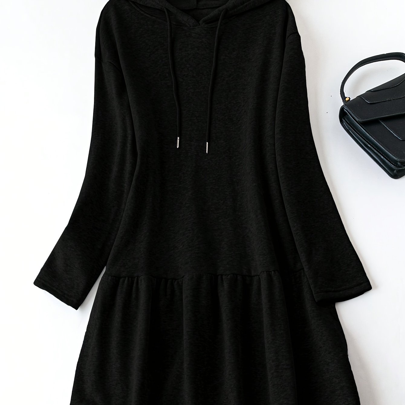 TEMU 플러스 사이즈 - 플러스 사이즈 - 여성용 우아한 후드 스웨트셔츠 드레스 - 긴소매, 러플 헴, 솔리드 그린, 캐주얼 가을/겨울 웨어, 편안하고 스타일리시, 캐주얼 웨어 드레스 | 러플 헴 드레스 | 신축성 있는 원단 드레스