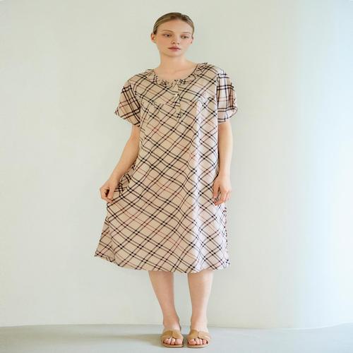 닥스 여성 체크 셔링 풍기 인견 반소매 원피스 파자마 (DLUN5B292I2)