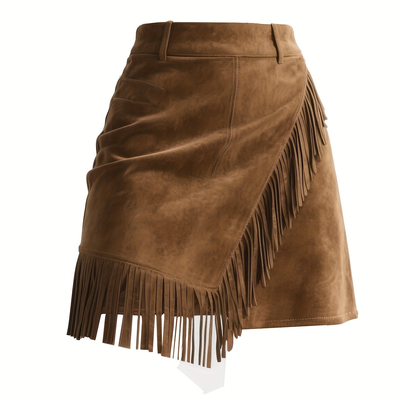 TEMU 여성용 빈티지 숏 스커트 - 솔리드 컬러 프린지(태슬) 숏 길이, 세탁기 사용 가능 논스트레치 스커트, 봄/가을용, 우아한 오피스부터 파티웨어까지, 클래식 미 스타일 데일리 아웃핏 (중성색)