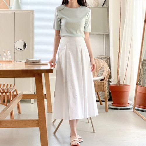 FOCUS 언발란스 투 핀턱 코튼 스커트 PBVFF5F1SK8060