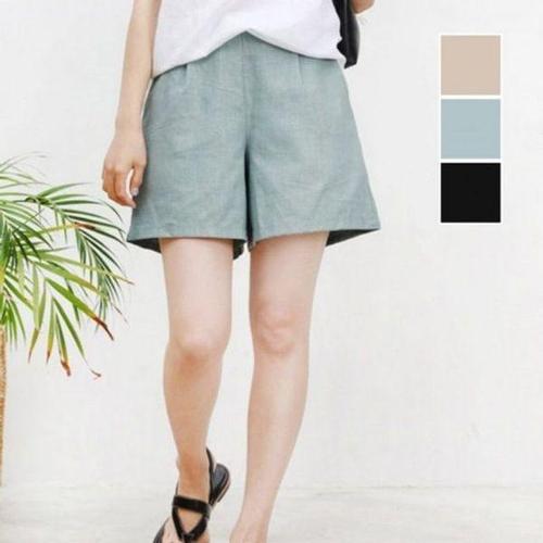 [셀러허브_여성트랜드패션]ONM 여성 A라인 허리 뒷부분 밴딩 린넨소재 데일리 반바지