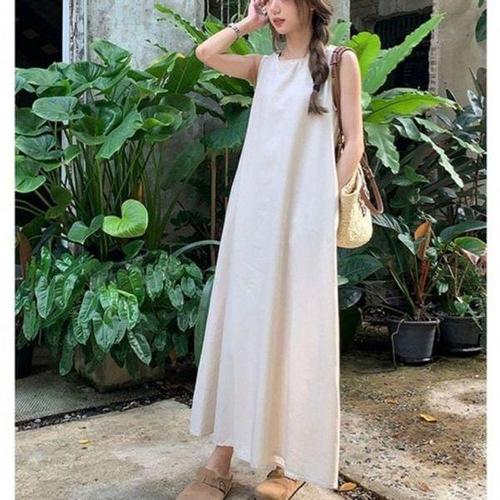 [에이치플러스몰]A라인 여성 캐주얼 나시 롱원피스 필수템 1P 뒷트임