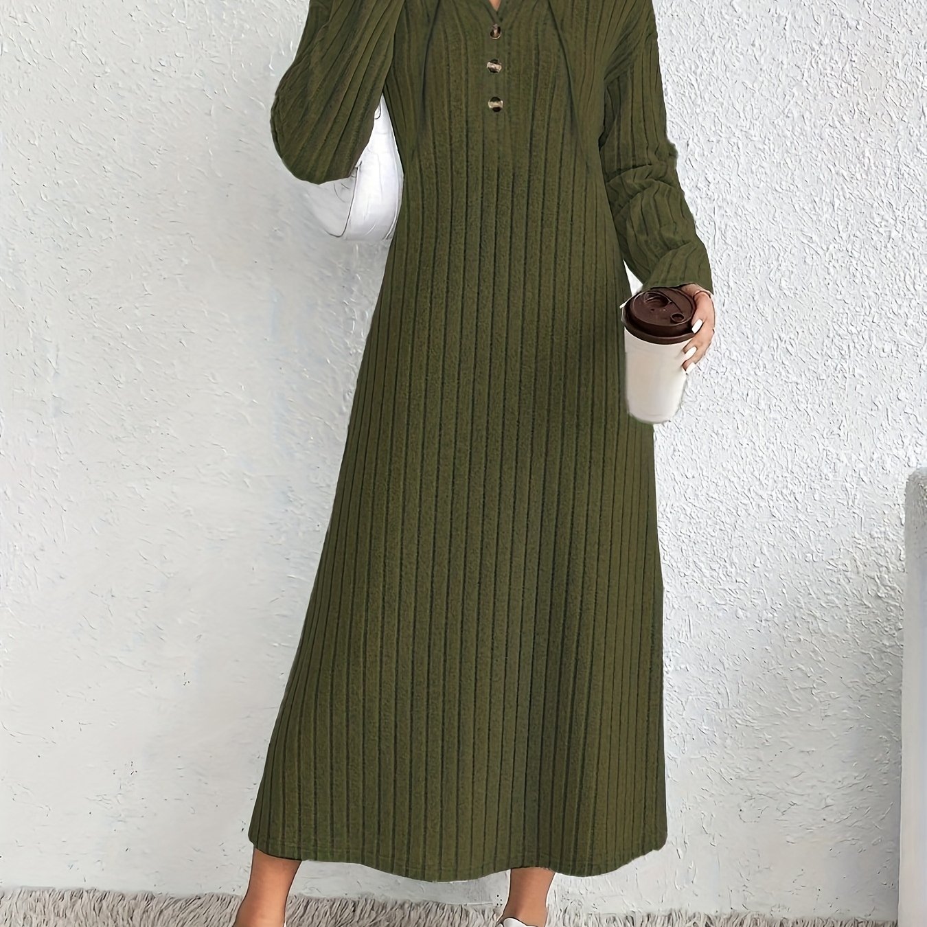 TEMU 엘리의 올리브 그린 맥시 드레스 - 롱 슬리브 A라인 겨울 드레스, 후드 칼라 & 수직 버튼 프론트, 가을/겨울용 포근한 스웨터 드레스, 캐주얼에서 포멀까지 (세탁기 사용 가능) - 노-디자인