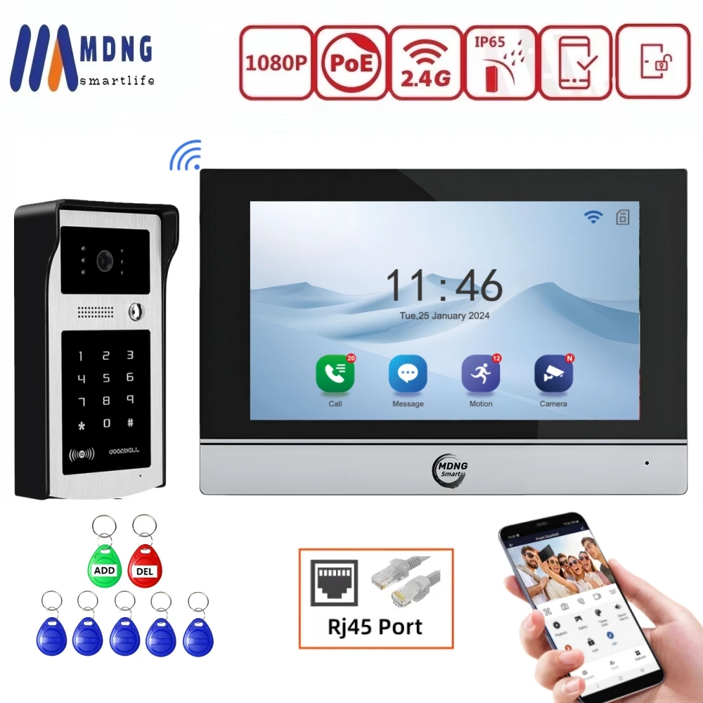 4선 빌라 비주얼 인터콤 디스플레이 1080P IPS 화면은 TUYA에 대한 무선 WiFi 연결, 원클릭 잠금 해제 등을 지원합니다.